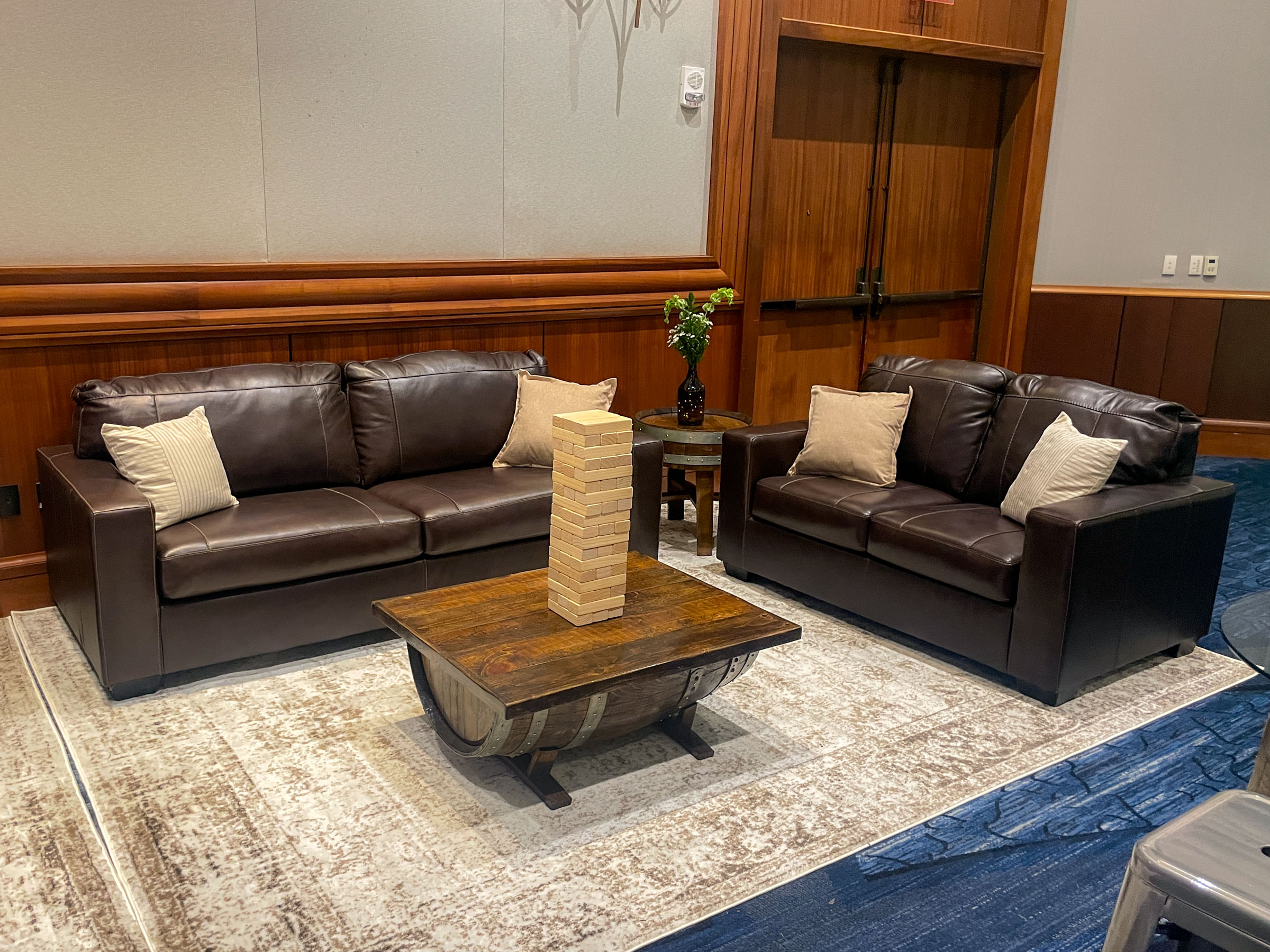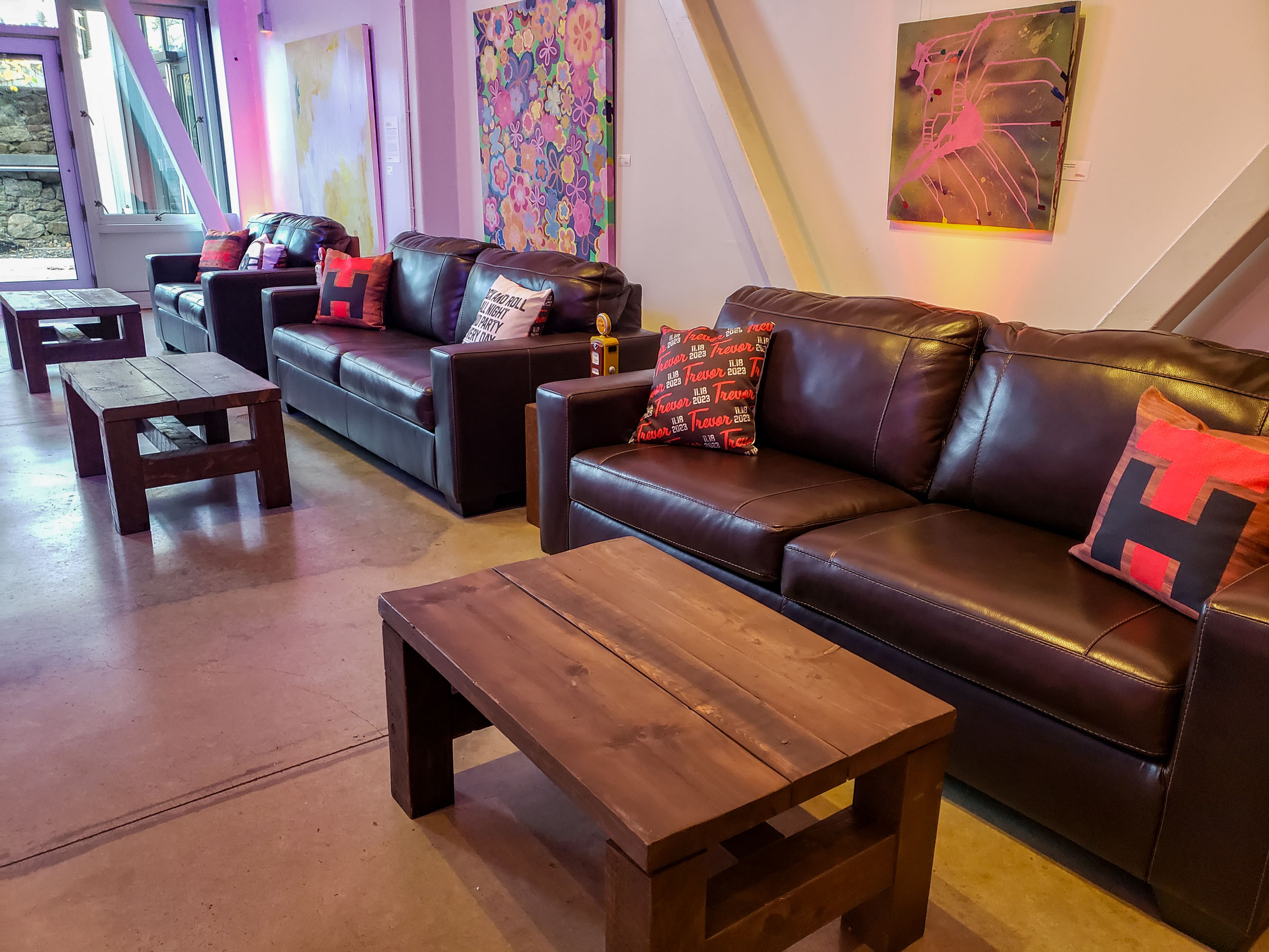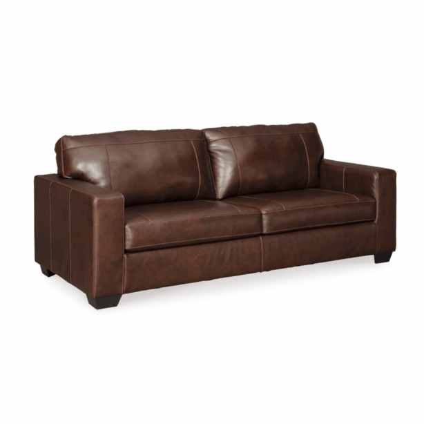 This classic leather sofa features rich brown faux leather upholstery with clean contemporary lines, track arms, and comfortable cushioned seating with contrasting stitching details. The timeless design with structured silhouette, expansive seating, durable construction, and warm neutral finish creates versatile seating that brings sophisticated comfort and enduring style to any professional or casual lounge setting.