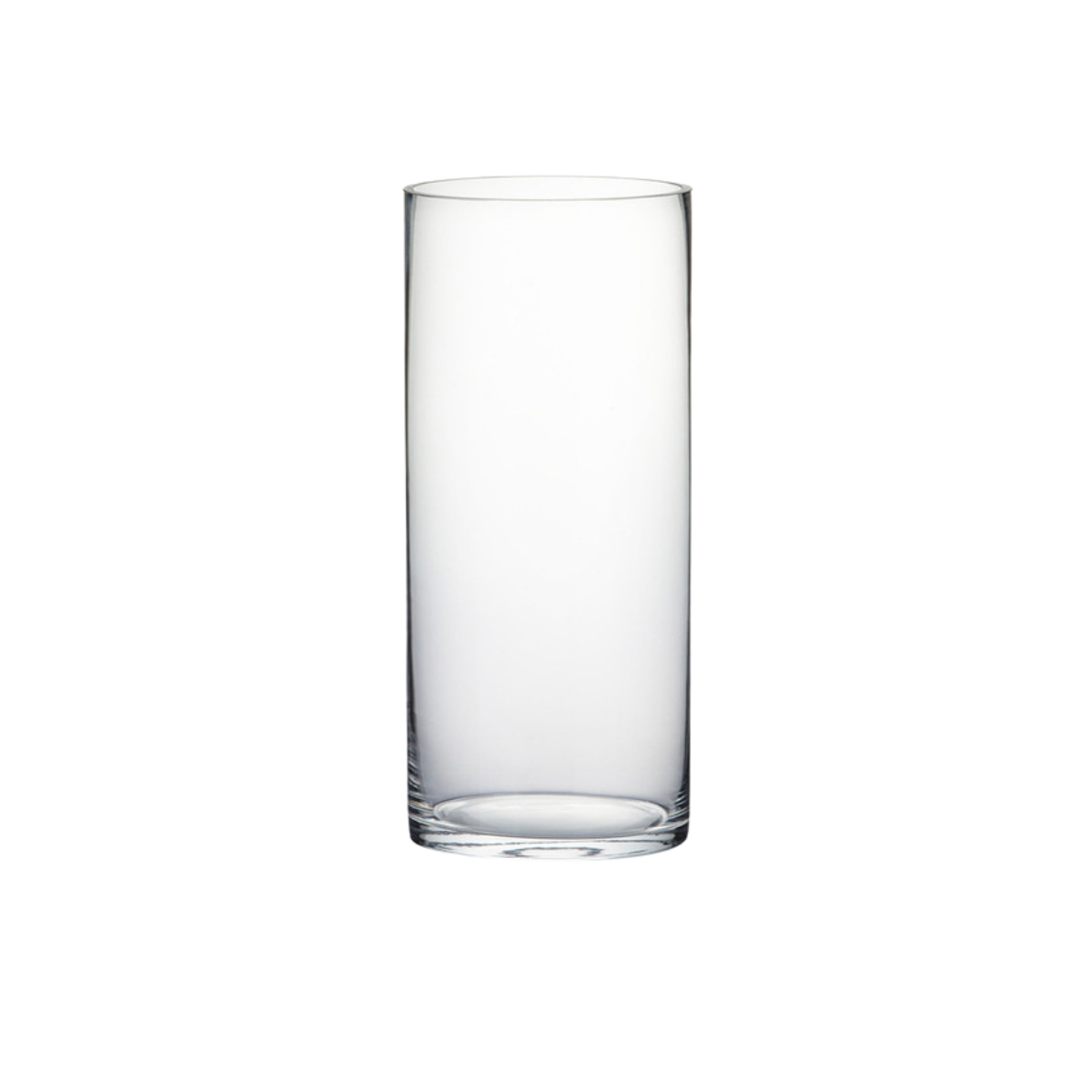 This clear glass cylinder vase features sleek straight-sided design with flat base and pristine clarity, delivering timeless versatility and clean modern lines for floral arrangements, floating candles, and elegant decorative displays.