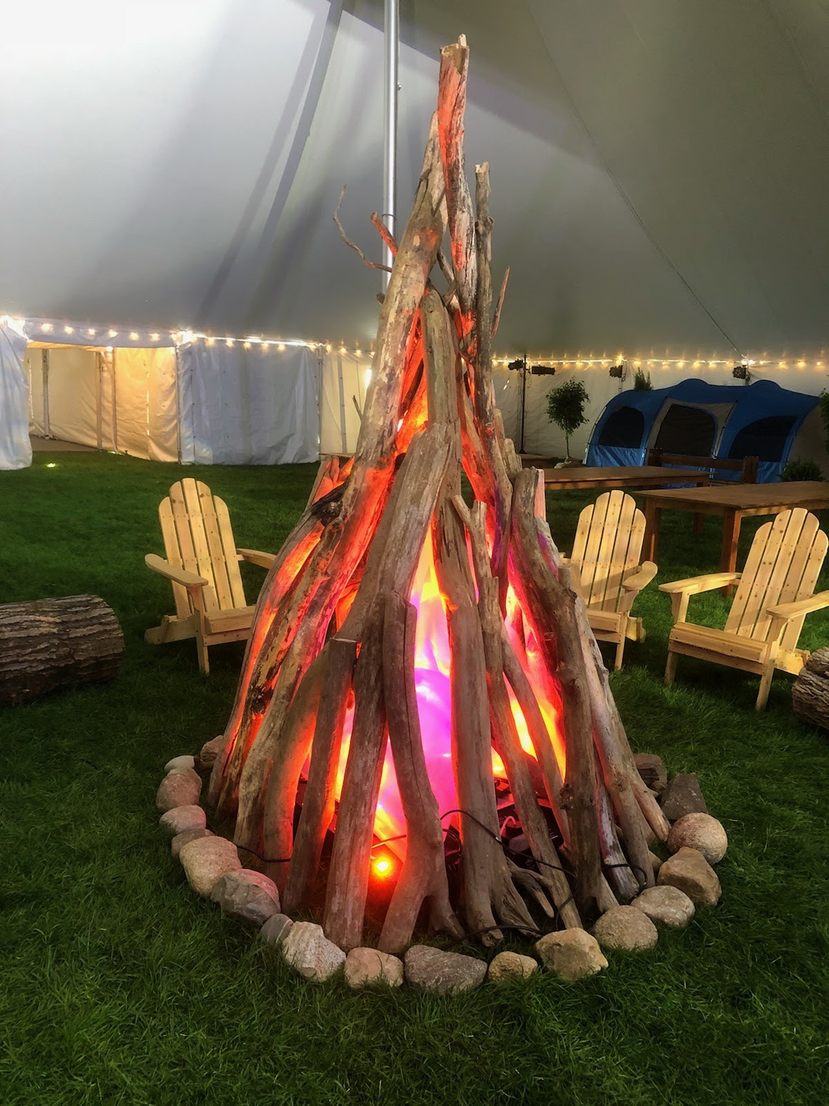Perfect for indoor camping themes, glamping events, corporate retreat styling, team building events with outdoor themes, camping birthday parties, scouting celebrations, Girl Scout and Boy Scout events, outdoor adventure themes, wilderness-themed parties, rustic weddings, barn wedding receptions, country celebrations, farmhouse events, lodge-style gatherings, cabin-themed parties, mountain retreat styling, national park-themed events, forest celebrations, summer camp nostalgia events, camp reunion parties, s’mores stations without fire hazards, indoor festival styling, venue restrictions requiring flameless options, hotel ballroom camping themes, convention center outdoor simulations, trade show camping displays, outdoor recreation industry events, sporting goods store promotions, camping equipment launches, RV show displays, outdoor lifestyle brand activations, storytelling events, ghost story gatherings, folklore celebrations, family reunion camping themes, backyard camping parties, sleepover camping themes, under-the-stars events, stargazing parties, astronomy-themed gatherings, Boy Scout Eagle ceremonies, Girl Scout bridging ceremonies, camp counselor appreciation events, outdoor education programs, environmental education events, nature center celebrations, and safe campfire atmosphere styling requiring realistic flame-effect ambiance with authentic driftwood character and comfortable Adirondack seating arrangement for gathering and storytelling experiences.
