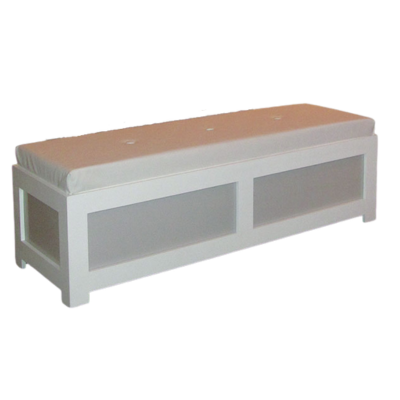 MATERIAL/COLOR: black or white tufted leather cushion, painted wood base with panel inserts