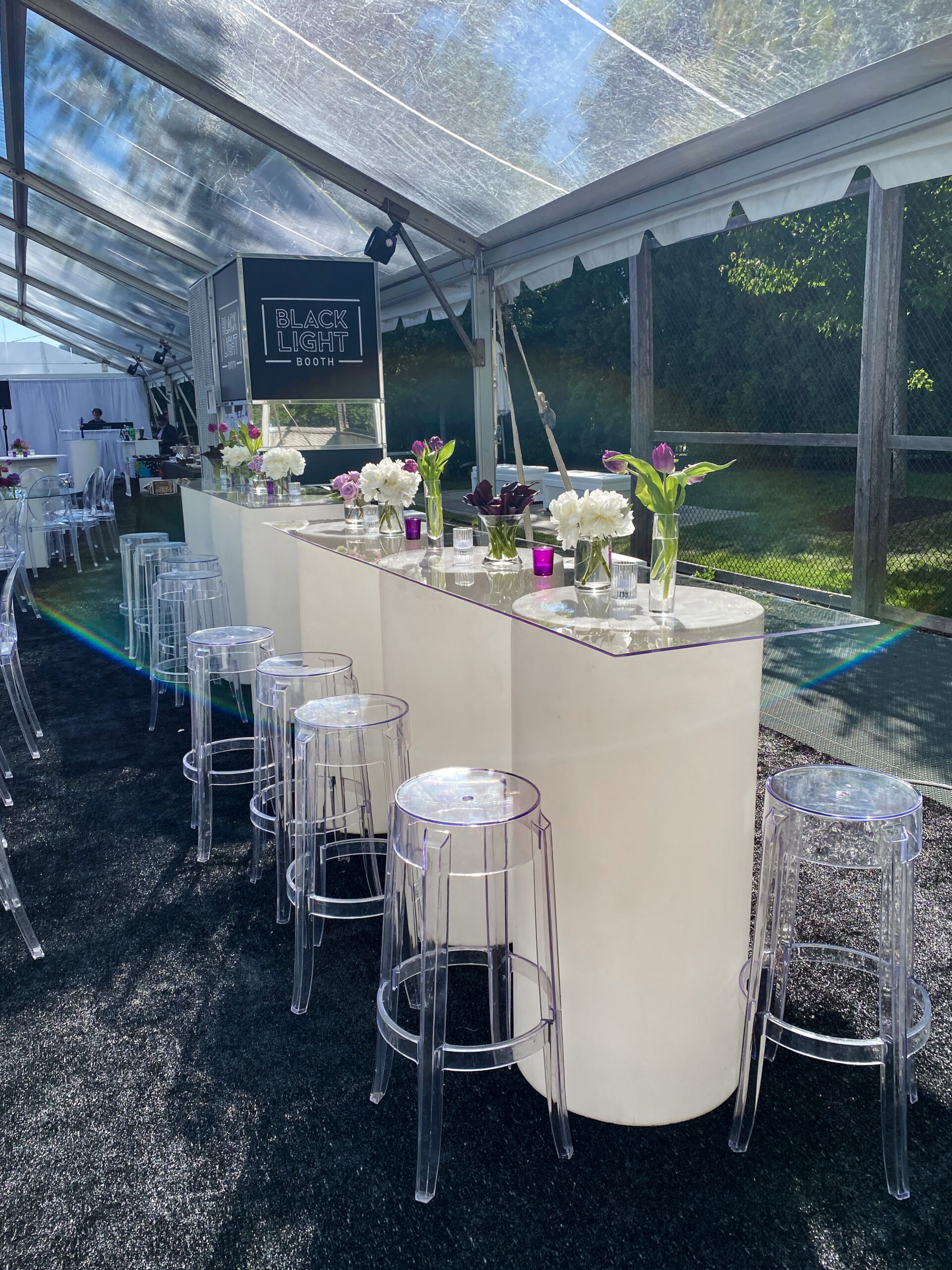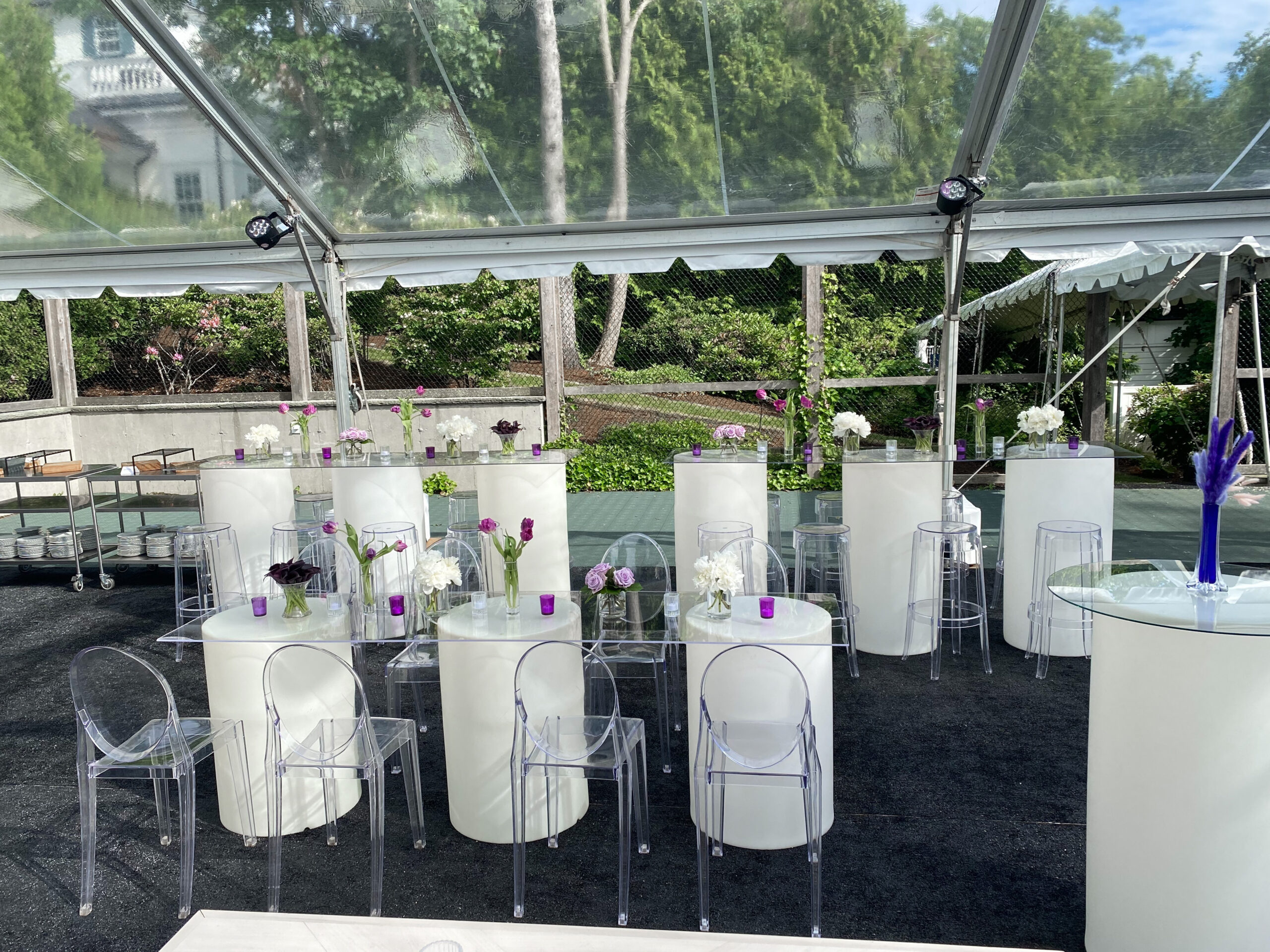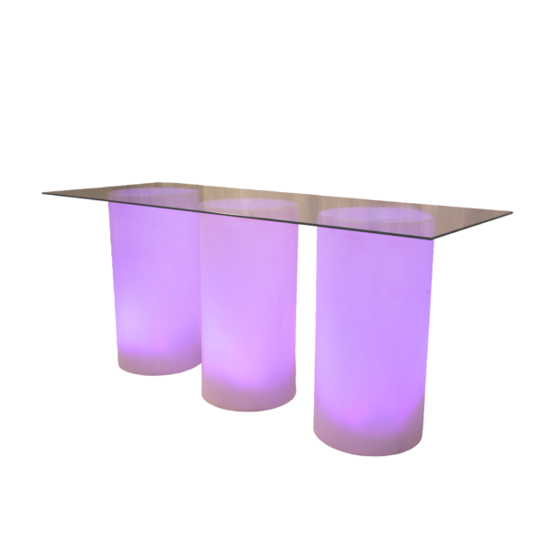 MATERIAL/COLOR: frosted lucite cylinders with interior LED lighting & plexiglass top