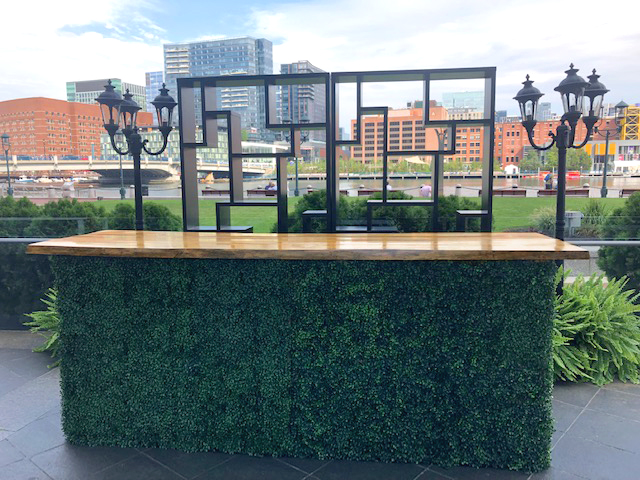The Hedge Bar brings natural elegance with its lush artificial greenery covering and warm wood countertop. This garden-inspired design creates an organic, refreshing atmosphere that brings the outdoors in. The textured foliage panel adds a sophisticated botanical touch, making it a perfect centerpiece for nature-themed celebrations and elegant outdoor venues.