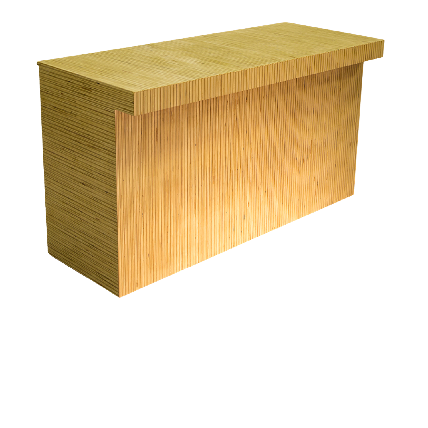The Industrial Chic Bar combines clean lines with natural wood tones for a modern yet inviting look. Its vertical panel design and smooth finish make it a versatile statement piece for any event setting. Ideal for use as a beverage bar, registration counter, food station or a DJ set.