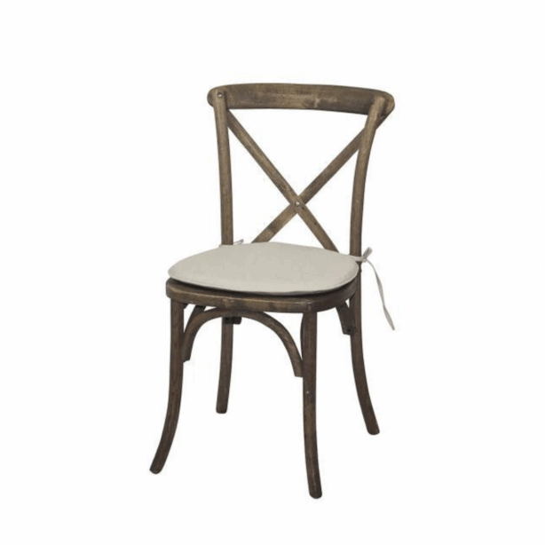 This rustic Napa chair features classic X-back detailing and a weathered wood finish that evokes the charm of European countryside bistros. The curved bentwood frame and gracefully arched legs showcase traditional craftsmanship, while the removable ivory cushion adds comfort and elegance. The distressed wood grain and vintage-inspired silhouette bring warmth and character to any setting, perfectly balancing farmhouse authenticity with refined sophistication.
