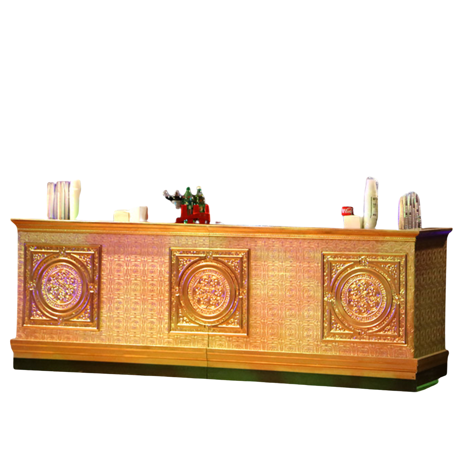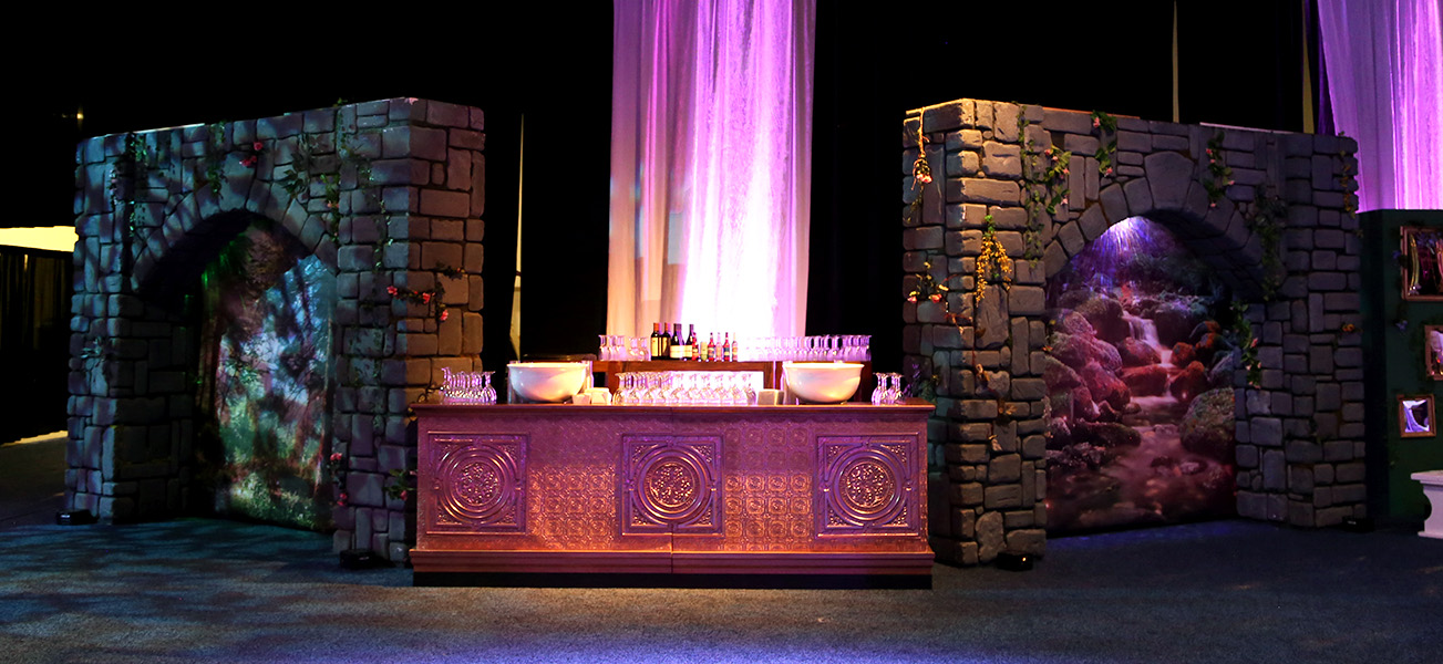 The Ridge Bar features clean horizontal ridged paneling that creates sophisticated texture and modern appeal. This versatile bar offers a fresh, contemporary look that complements any event style.