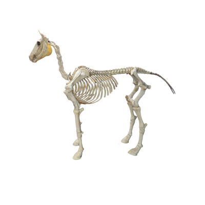 This anatomically detailed horse skeleton prop features realistic bone structure with authentic skeletal proportions, creating an eerie educational display piece.
