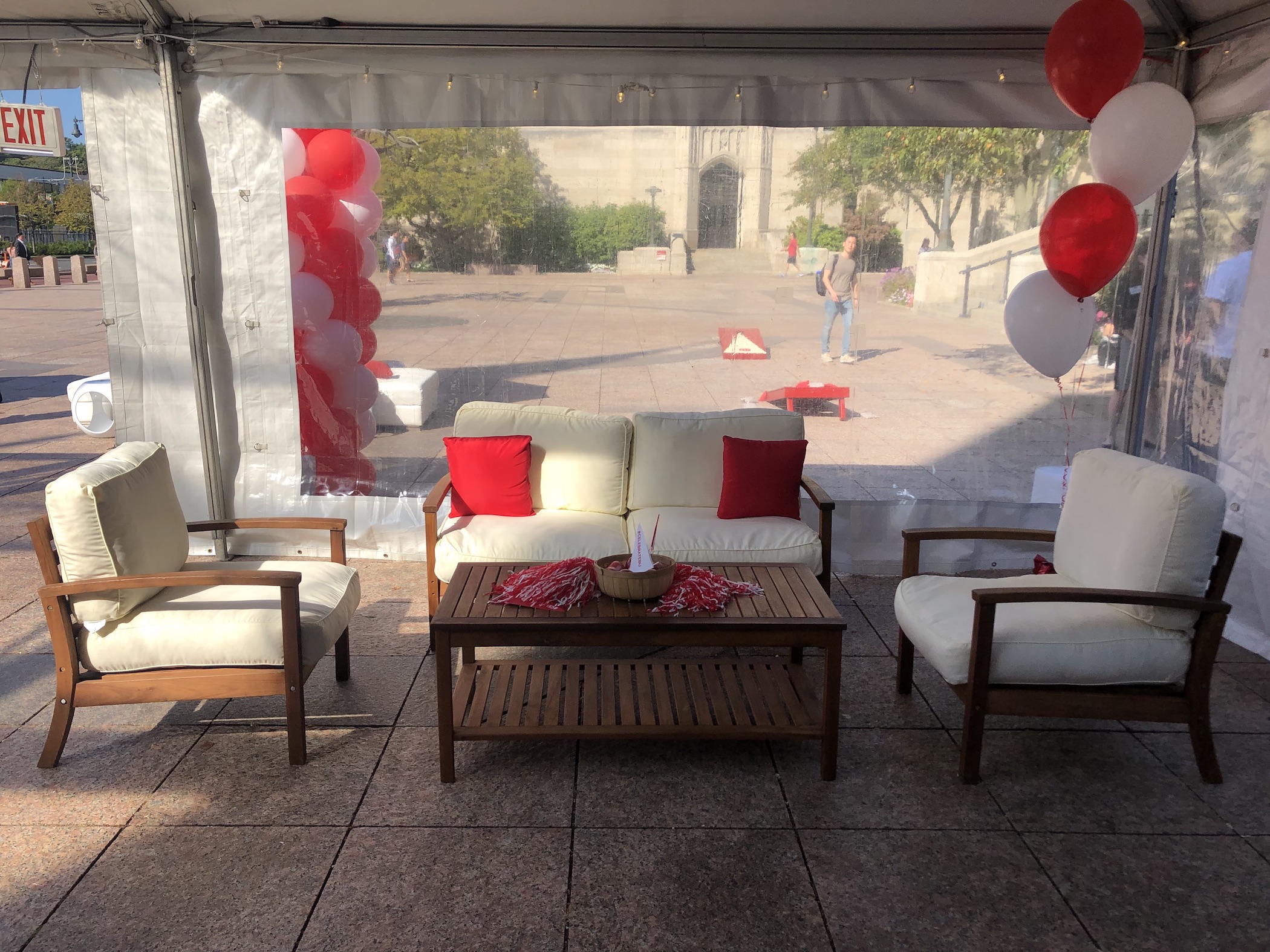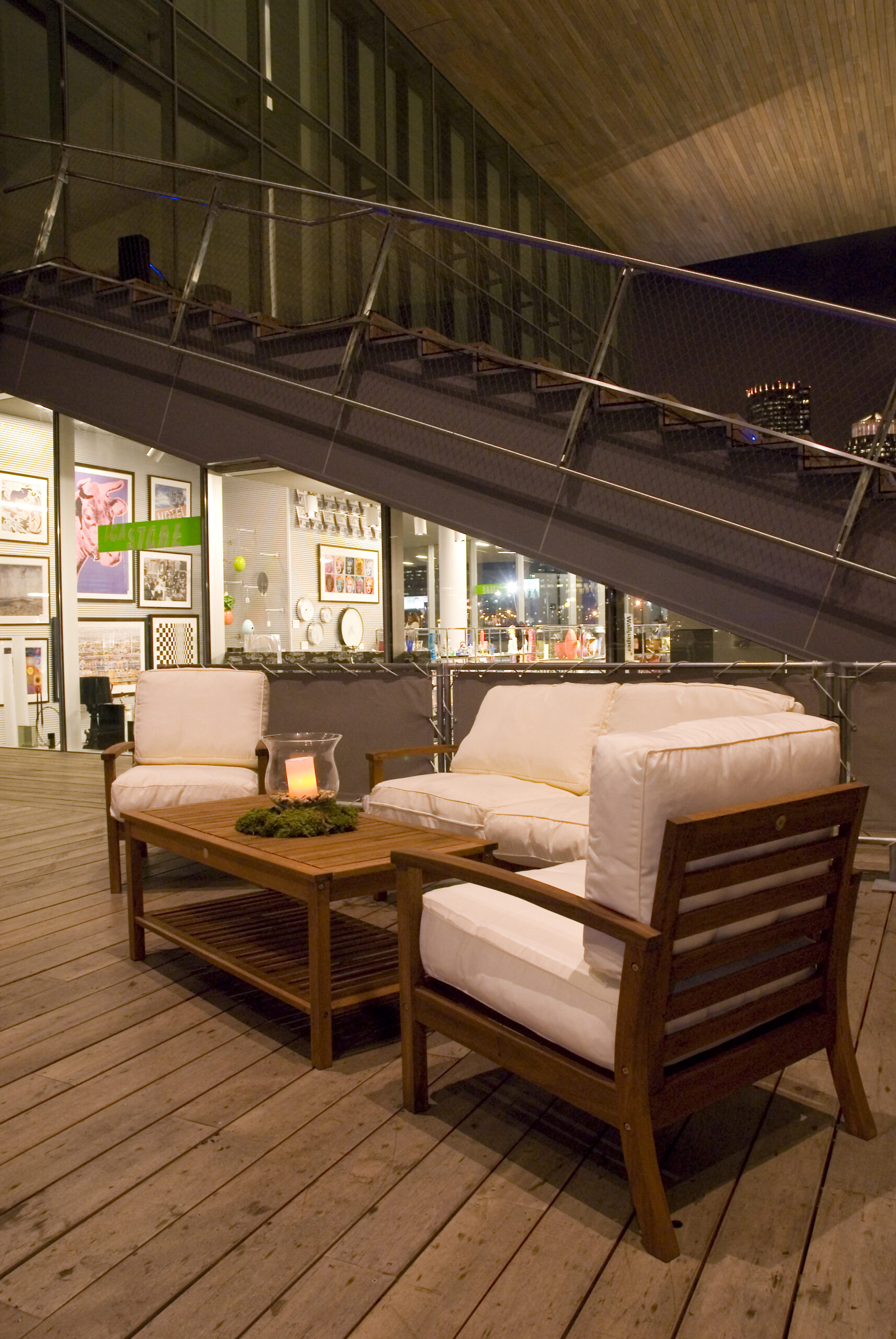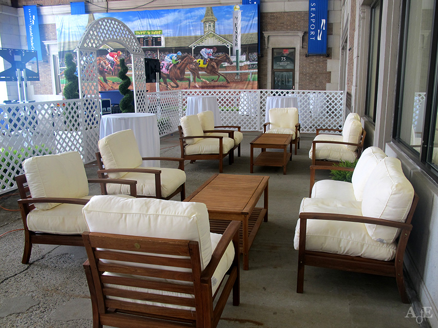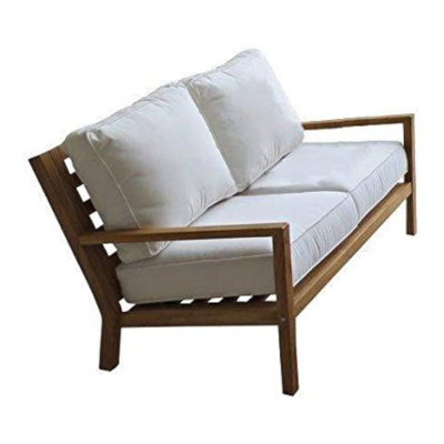 MATERIAL/COLOR: teak wood, white plush cushions