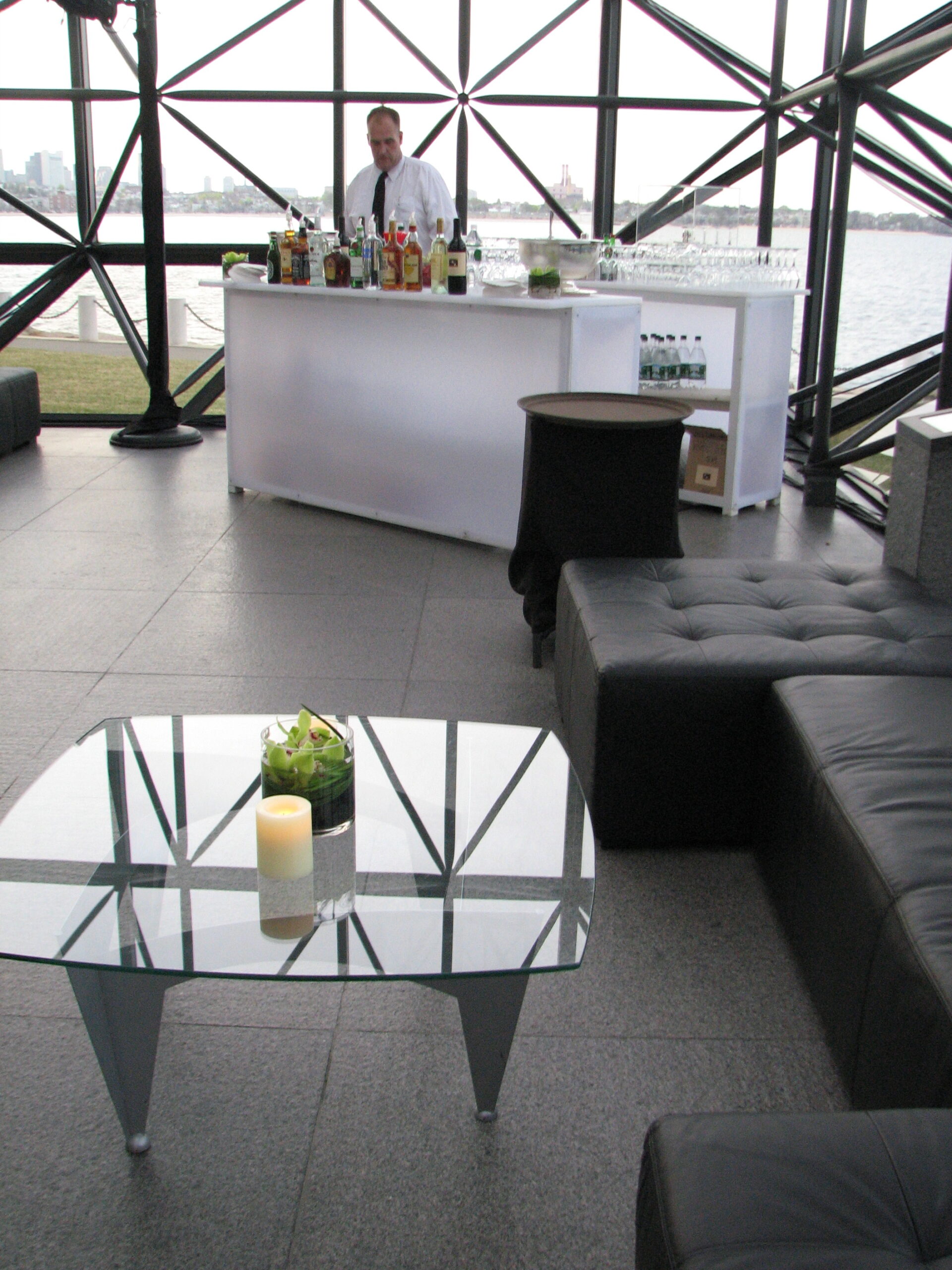 MATERIALS/COLOR: silver metal base with glass top